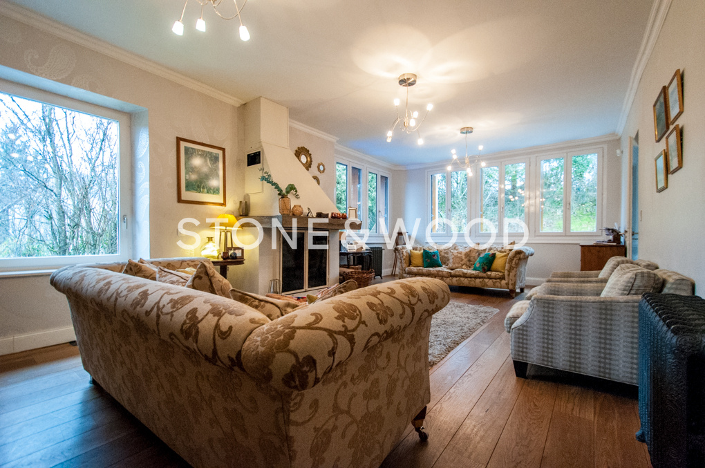 Ancien moulin rénové avec goût et charme d’environ 353 m2 utiles. Terrain clos de 1090 m2. Au rez-de-chaussée, grande cuisine ouverte sur salle-à-manger/séjour avec accès sur une terrasse d’environ 100 m2. Large salon avec cheminée. 2 chambres. Salle-de-bains et Wc. A l’étage, un bureau en mezzanine et 2 chambres supplémentaires dont une spacieuse suite parentale avec espace salon, salle-de-bains, Wc et dressing. Au sous-sol, appartement type loft d’environ 80 m2 avec accès terrasse comprenant : séjour, cuisine, chambre, salle-de-douche et Wc. Chaufferie. Grande cave. Abri voiture et places de parking. Environnement calme et verdoyant. Situé à 3 minutes en voiture de toutes commodités. Possibilité de créer en plus, un appartement de 100 m2 env. DPE : D