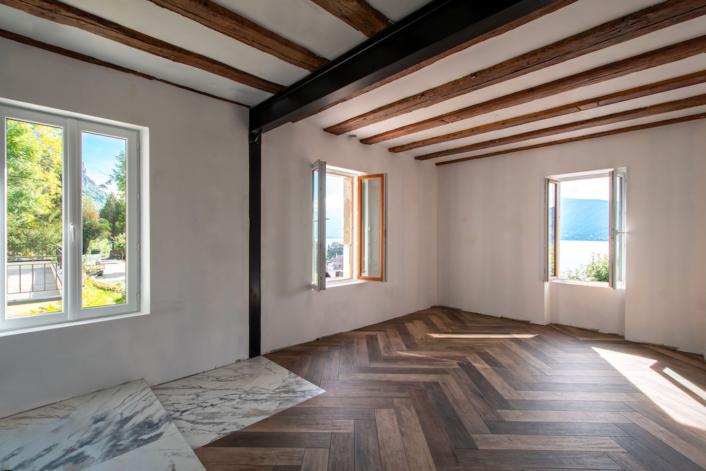 Situé à l’entrée de Veyrier-du-Lac, au sein de l’une des premières demeures de Maître édifiées sur la commune, appartement de 122,4 m2 avec terrasse de 70 m2 profitant d’une vue à couper le souffle sur le lac et les montagnes.