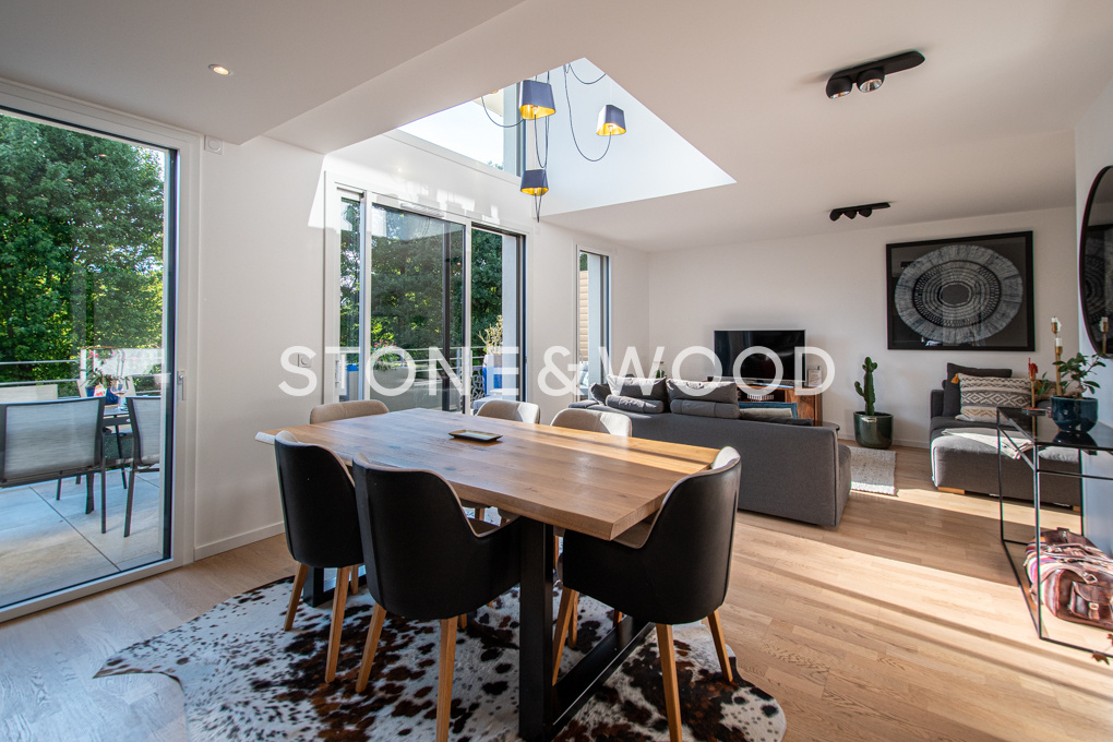 Situé sur les hauteurs d’Annecy-le-Vieux, à proximité du chef-lieu, au sein d’une résidence récente de qualité. Appartement de type 3 en duplex d’une superficie de 74,88 m2 habitables au calme absolu, dans un cadre champêtre. Prestations haut de gamme. Au niveau principal, une belle pièce de vie d’environ 40 m2 ouverte sur une terrasse de 19,40 m2 exposée Ouest, comprenant une entrée avec WC et lave mains, une cuisine équipée haut de gamme ouverte sur le séjour. A l’étage, une chambre principale avec dressing en tête de lit réalisé sur-mesure, une chambre avec un grand dressing aménagé, une mezzanine avec placard, une salle d’eau et un WC indépendant. DPE : B Garage double et place de parking double en sous-sol inclus. Le bien est soumis au statut de la copropriété (46 lots répartis en 3 petits bâtiments). Pas de procédure en cours. Charges prévisionnelles : 1553 EUR/an (chauffage et eau chaude inclus). Honoraires TTC à la charge du vendeur.