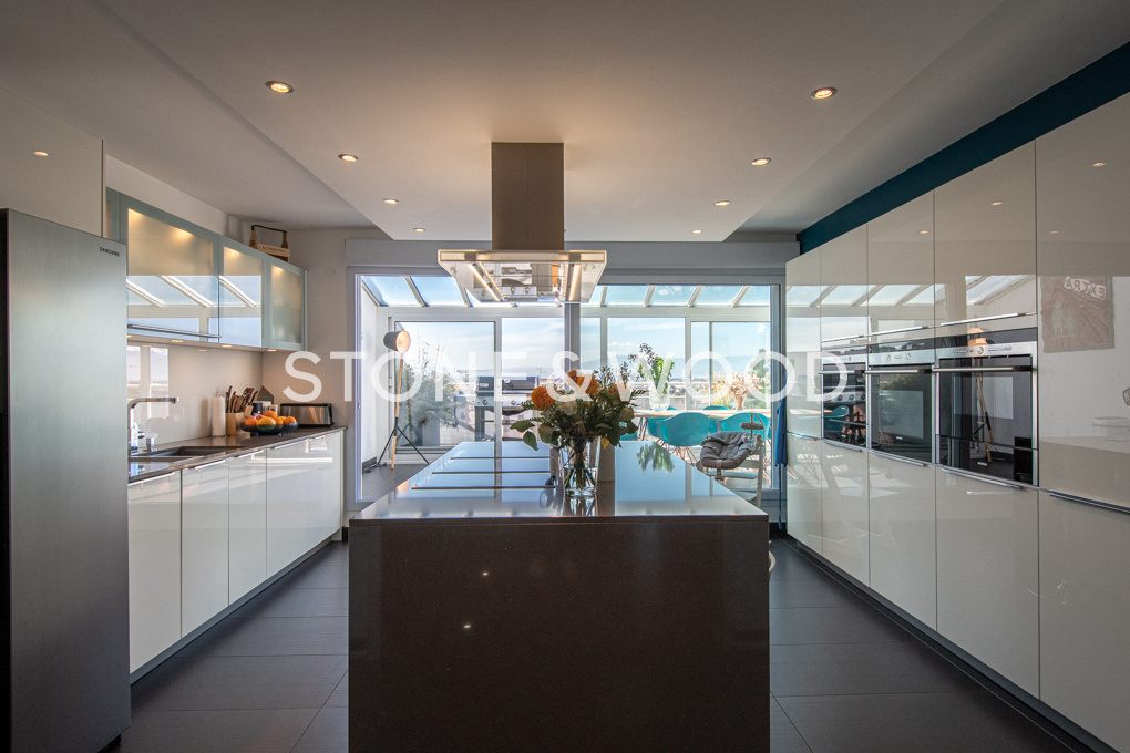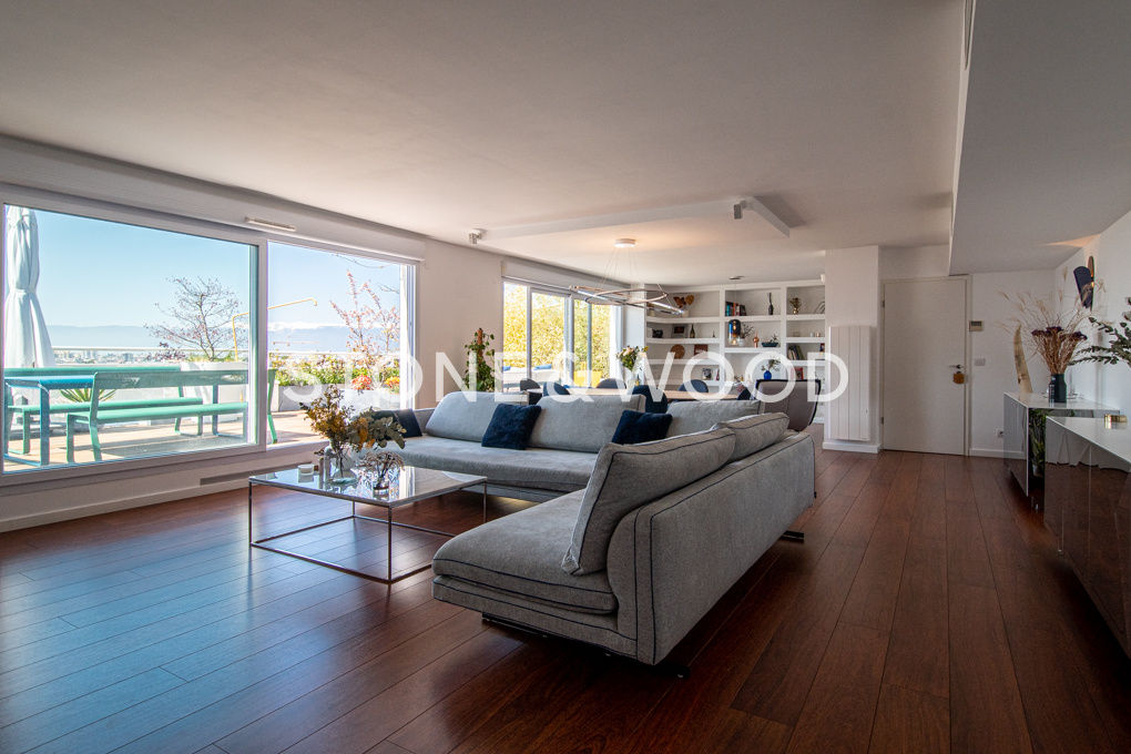 Sublime appartement attique d’une surface de 233,4 m2 Loi Carrez prolongée par une vaste terrasse de 58 m2 orientée plein Sud offrant une vue panoramique sur la ville et les montagnes. Rénové avec des matériaux haut de gamme, l’intérieur est moderne, chaleureux et très lumineux.