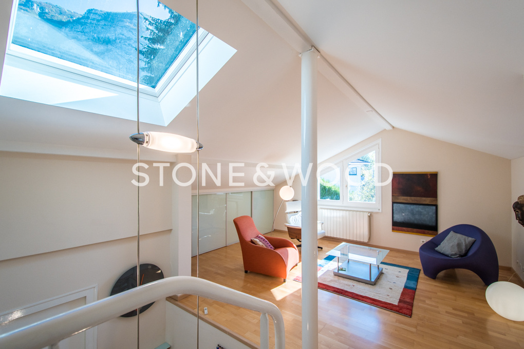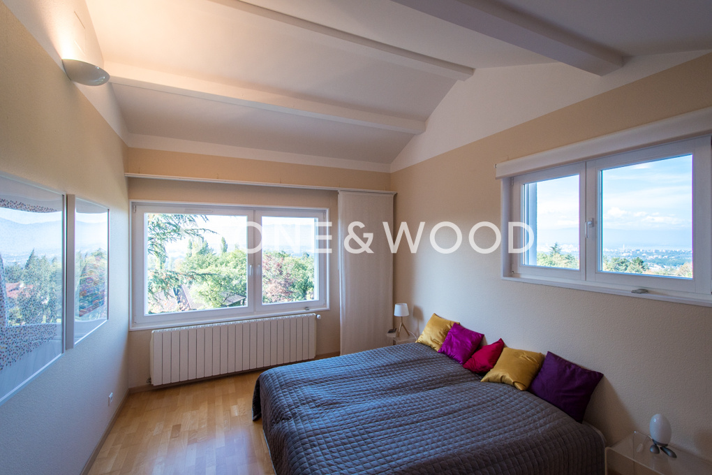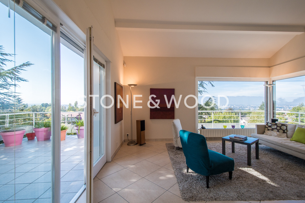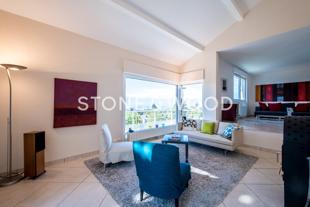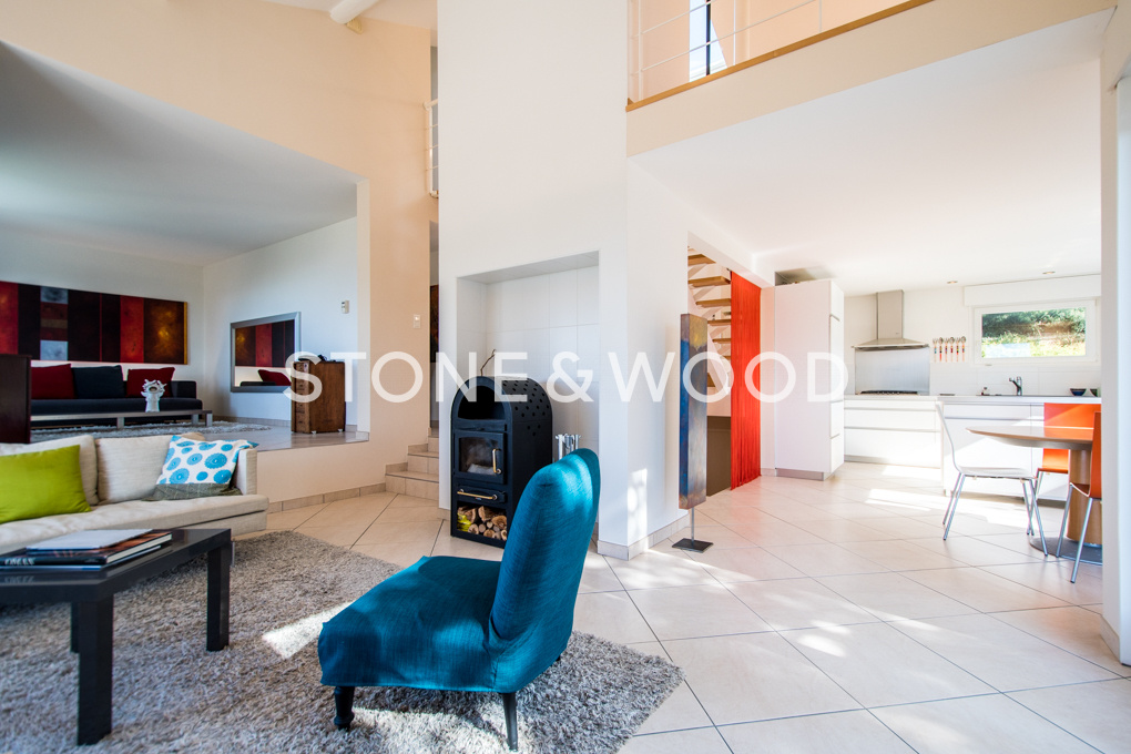 Exclusivité. Charme, luminosité et calme absolu pour cette propriété de 213 m2 habitables établie sur un terrain clos et arboré de 1458 m2 sur les hauteurs de Collonges-sous-Salève. Composée d’une cuisine équipée avec salle-à-manger, salon avec poêle à bois et accès sur une grande terrasse et second salon sur demi niveau. 4 chambres dont une en-suite et deux avec dressing. 3e salon à l’étage. Nombreux rangements. Grande buanderie. Atelier avec entrée indépendante. Cave. Garage. Local extérieur. Environnement verdoyant et sans vis-à-vis. Magnifique vue sur Genève et le jet d’eau. DPE : C