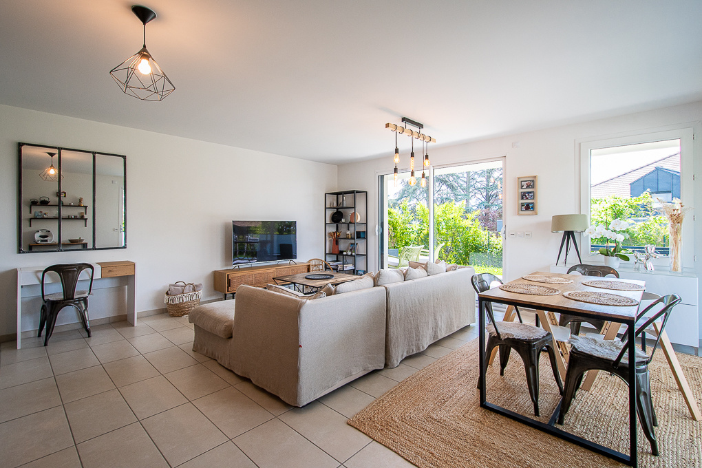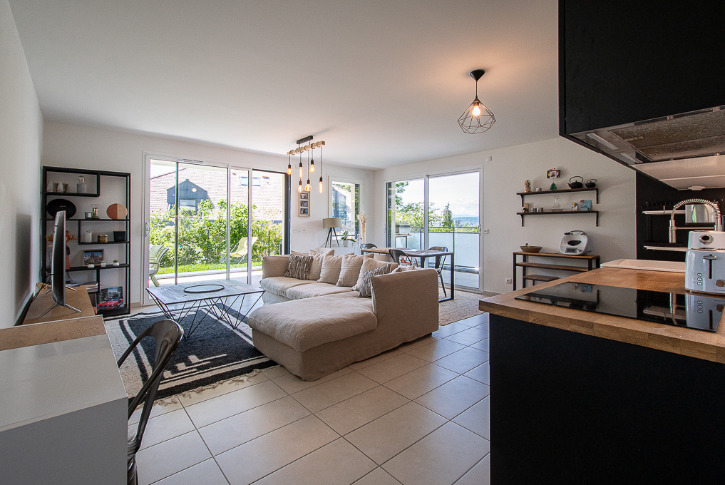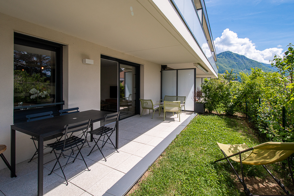Dans un secteur calme et prisé à proximité du chef lieu d’Annecy-le-Vieux, bel appartement 4 pièces situé au rez-de-chaussé d’une copropriété de standing de 2018 établie au sein d’un magnifique parc clôturé et arboré. Cet appartement offre une surface de 85 m2 Loi Carrez ainsi qu’une grande terrasse et un jardin privatif protégé du vis-à-vis. Il se compose d’une spacieuse et lumineuse pièce de vie avec plusieurs accès terrasse et comprend une cuisine équipée ouverte, un salon et un salle-à-manger. 3 chambres avec placard intégré. Salle-de-bains et WC indépendant (possibilité de créer une salle de douche supplémentaire). Entrée avec cellier. Garage et grande cave en annexe. Copropriété avec local à vélo. Bien soumis au statut de la copropriété (20 lots). Charges de copropriété : 1’700 EUR par an. Aucune procédure en cours. DPE : C Honoraires TTC à la charge du vendeur