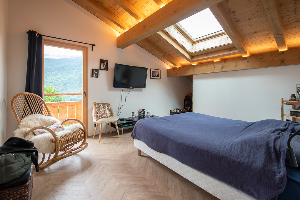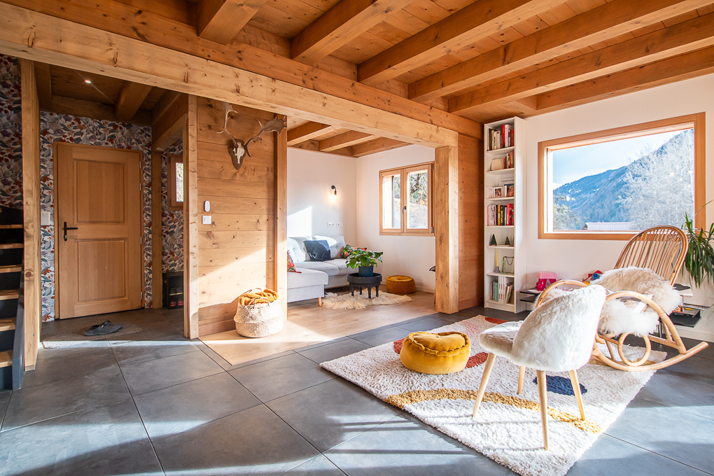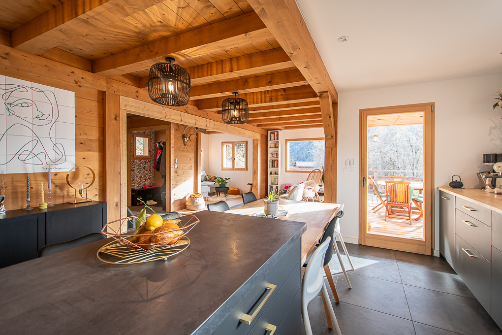 Dans un secteur calme et ensoleillé à proximité de La Clusaz et des commodités, chalet madrier de 2021 d’une surface de 230 m2 utiles avec vue panoramique sur les montagnes.