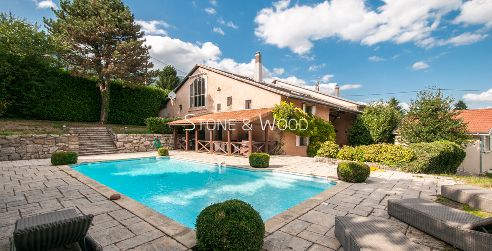Environnement rare et de qualité. Propriété lumineuse avec de beaux volumes d’environ 280 m2 habitables. Terrain clos et arboré d’environ 1’315 m2. Grand séjour cathédrale. 2e salon avec cheminée. Cuisine équipée indépendante. 4 chambres dont une suite parentale. Bureau. Piscine chauffée. Maison de gardien. Vue dégagée sur les Alpes et le Mont-Blanc. Sans vis-à-vis. Possibilité d’acquérir un terrain constructible attenant de 780m2 env. DPE : D