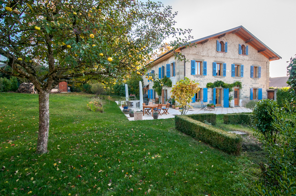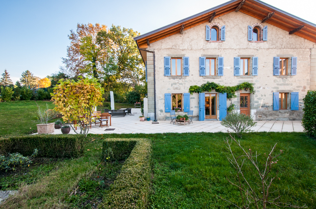 A 10 mn de Saint-julien-en-Genevois et 5 mn de Soral : Propriété de 1750 entièrement rénovée avec goût. Propriété lumineuse avec de beaux volumes et beaucoup de charme d’environ 350 m2. Terrain d’environ 1’000 m2 clos et arboré. Salon de réception. Cuisine entièrement équipée ouverte sur salle-à-manger. Salon/salle-à-manger avec poêle à bois. 5 chambres. 2e salon TV. Studio en cathédrale indépendant. Cave. Cellier. Abri jardin. Abri voiture. Plusieurs places de parking. Environnement calme, verdoyant et sans vis-à-vis. DPE : NC