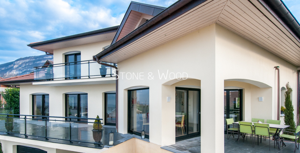 Sublime maison contemporaine d’environ 280 m2 habitables construite récemment avec des prestations haut de gamme. Propriété avec de beaux volumes et lumineuse établie sur une parcelle de 926 m2 close et arborée. Salle de fitness. Cave à vin. Buanderie. Grand garage pour 4 voitures. Piscine chauffée à débordement. Vue imprenable sur Genève. DPE : C