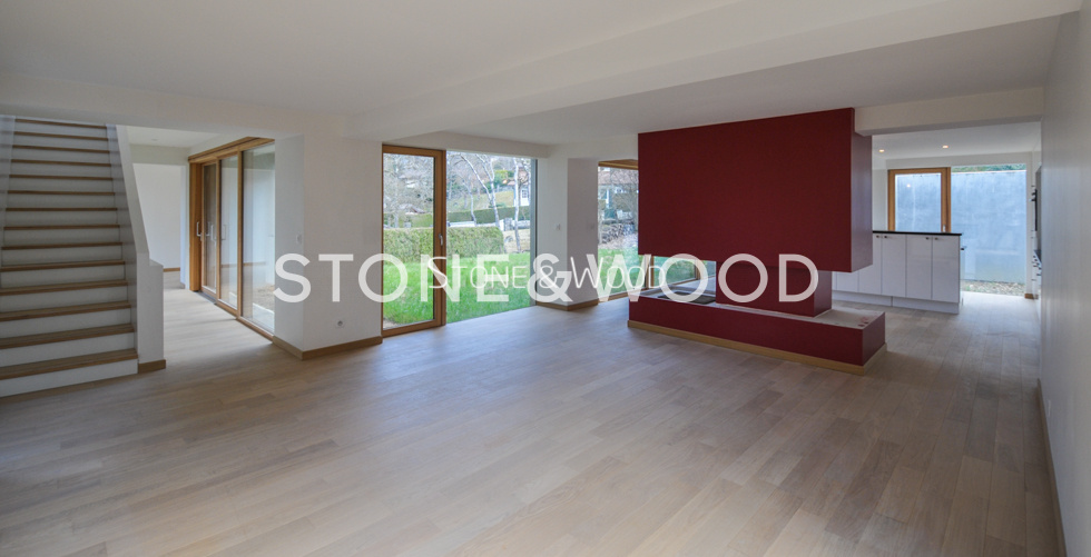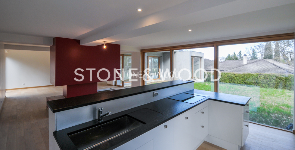 Contemporaine et épurée, magnifique maison d’architecte de 265 m2. Grand salon avec cuisine équipée ouverte et cheminée centrale. 2e Salon avec vue dégagée sur Genève. Bureau, 5 chambres dont une suite parentale. Double garage. Cave. Terrain arboré de 1295 m2. Secteur résidentiel et environnement très calme proche du Golf et à 10 min de Genève. DPE : NC