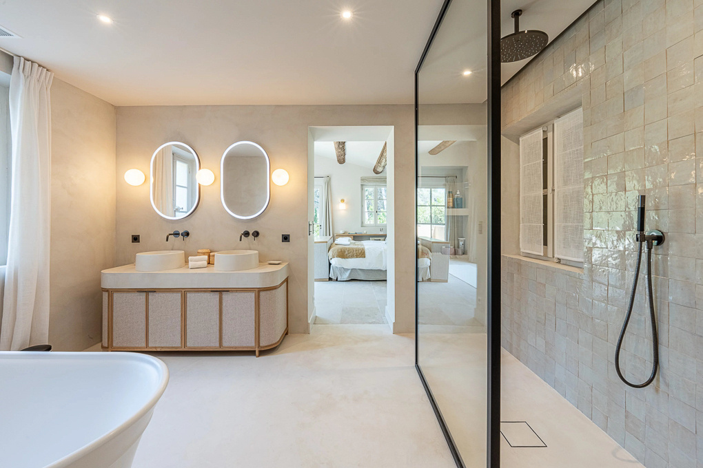 Majestueux mas provençal d’env. 350 m2 habitables sur 2 niveaux aux prestations haut de gamme avec vue panoramique sur le jardin luxuriant et les Alpilles.