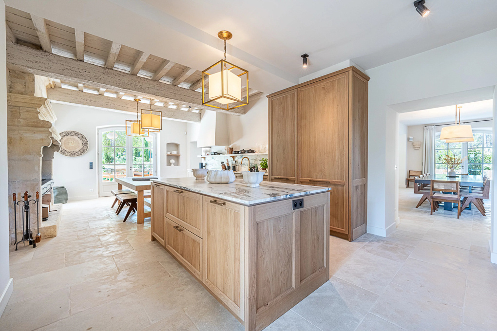 L’intérieur se compose d’une vaste cuisine agrémentée d’une cheminée, d’un salon et salle à manger avec seconde cheminée en pierre de taille. Bibliothèque. Master suite avec salle-de-bains, douche, toilettes et dressing privatifs. A l’étage, 4 chambres en-suite avec salle d’eau/salle de bains privative, dressing et de toilettes. Dortoir.