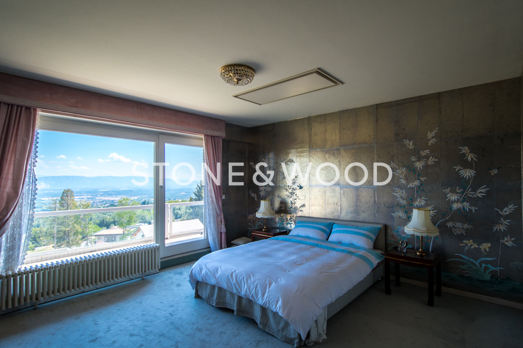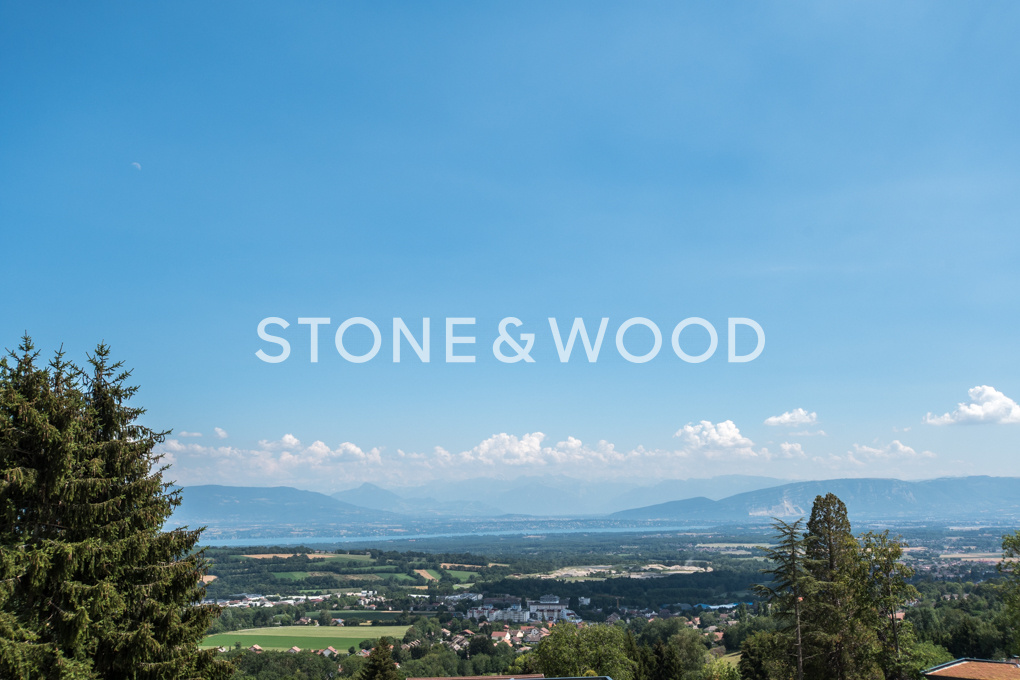 Située sur les hauteurs de Gex, superbe propriété contemporaine d’une superficie d’environ 380 m2 habitables sur un terrain clos et arboré d’environ 4000 m2. Spacieuse et lumineuse pièce de vie comprenant un salon/séjour et une salle-à-manger avec cheminée et plusieurs accès sur la terrasse. Cuisine équipée indépendante. Piscine intérieure avec sauna et jardin d’hiver. A l’étage, 5 chambres dont une en-suite et 3 avec accès sur le balcon. Sous-sol complet composé d’un garage, buanderie, chaufferie, cellier et local technique. Quelques travaux de rafraîchissement à prévoir. Environnement calme, verdoyant et sans vis-à-vis. Vue dégagée et imprenable sur le lac Léman. DPE : E