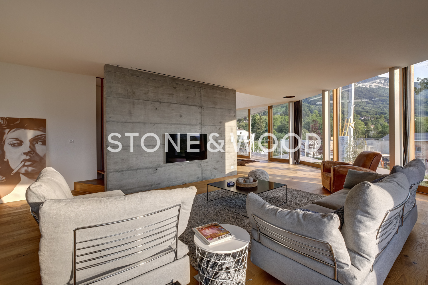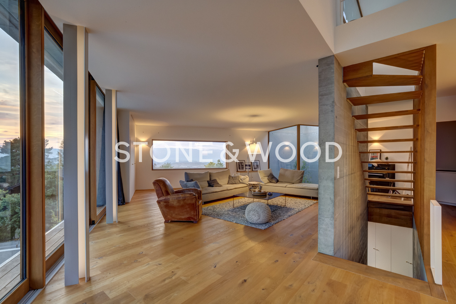 Dans un cadre préservé, calme et verdoyant sur les hauteurs de Collonges-sous-Salève Cette propriété d’architecte contemporaine aux prestations haut de gamme offre une surface de 245 m2 hab. et 280 m2 utiles. Les volumes sont magnifiques et optimisés afin d’offrir luminosité naturelle et vues dégagées sur Genève et le Jura à travers les grandes baies vitrées prolongées par des terrasses surplombant le jardin et la piscine chauffée à débordement. Parcelle clôturée et arborée de 1307 m2 Bain norvégien. Cave à vins enterrée et ventilée. Garage pour 3 voitures et places de parking extérieur. Honoraires TTC à la charge du vendeur