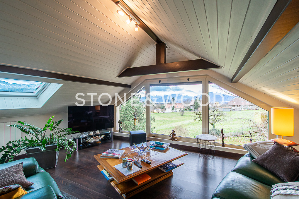Dans un cadre préservé, au calme, à seulement 15 min du centre d’Annecy et 30 min de Genève, propriété familiale d’env. 200 m2 utiles implantée sur un terrain clos et arboré de 1500 m2.