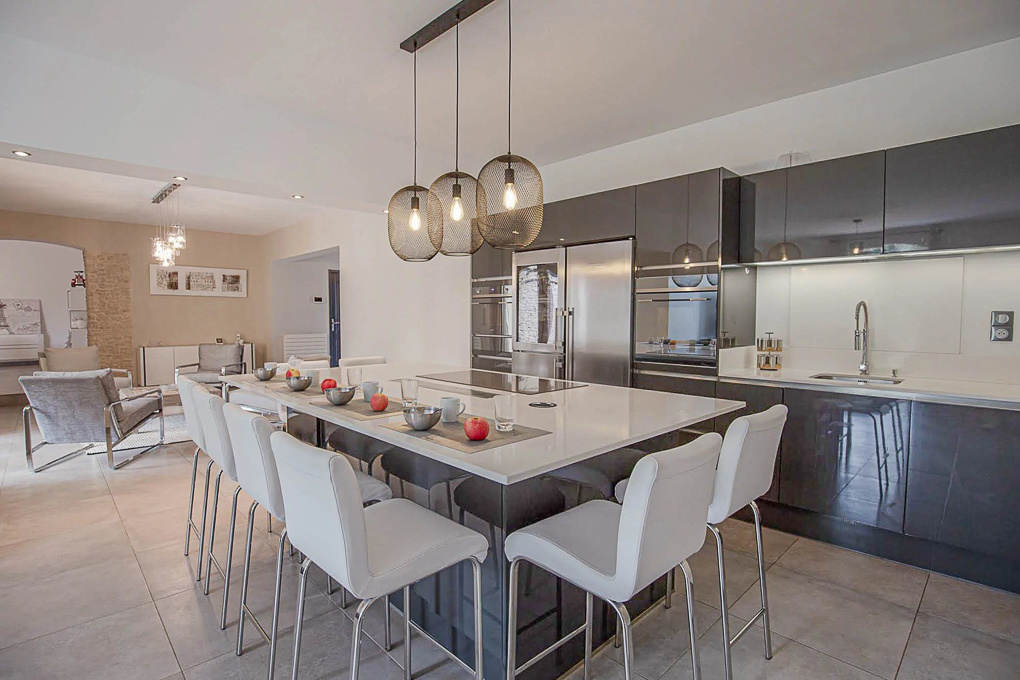 Récemment rénovée avec goût, les pièces de vie offrent de beaux volumes et beaucoup de luminosité. D’une surface habitable d’env 335 m2, la maison dispose d’une cuisine ouverte sur séjour, d’une salle à manger et d’un spacieux salon. 4 chambres en-suite dont 2 avec baignoire balnéo et dressing. Salle de billard et 2 bureaux. Buanderie et cellier.