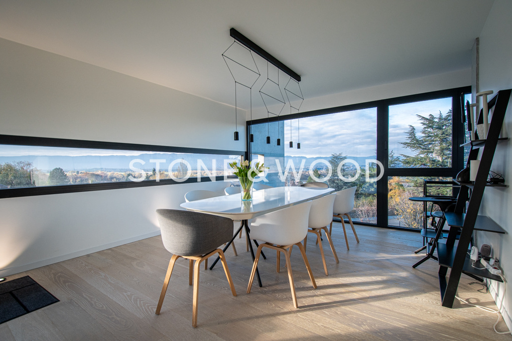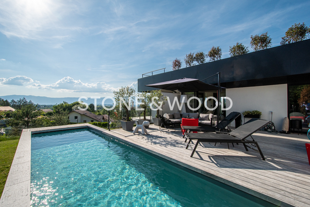 Dans un cadre unique, calme et verdoyant à seulement 15 minutes de Genève, sublime propriété contemporaine d’environ 343,29 m2 utiles aux prestations modernes et haut de gamme.