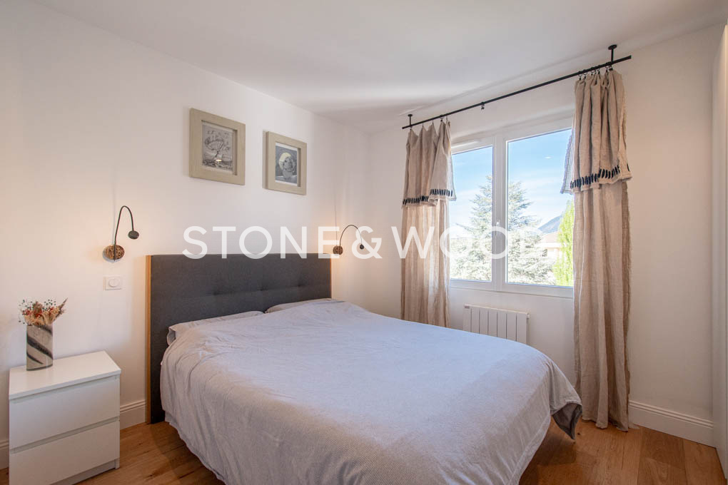 Rare sur secteur. Triangle d’or à 100 m du lac, quartier prisé et calme à proximité du centre-ville, des commerces et de toutes commodités. Au dernier étage, magnifique appartement de 78 m2 Loi Carrez avec vue lac. L’intérieur est lumineux, fonctionnel, et les prestations sont de très belle qualité. Il se compose d’un hall d’entrée avec dressing, d’une grande pièce de vie avec cuisine équipée ouverte et îlot central, salle à manger et salon prolongé par un balcon avec vue lac. 2 chambres avec placards intégrés. Salle d’eau et WC indépendant. 3ème chambre possible. Nombreux rangements. Grenier de 13 m2 et cave de 7 m2. Parking de copropriété. DPE : E Possibilité d’acquérir un grand garage en sus du prix de vente. Le bien est soumis au statut de la copropriété (20 lots). La quote-part budget prévisionnel charge vendeur (dépenses courantes) est d’environ 1216EUR/an. Honoraires TTC à la charge du vendeur.