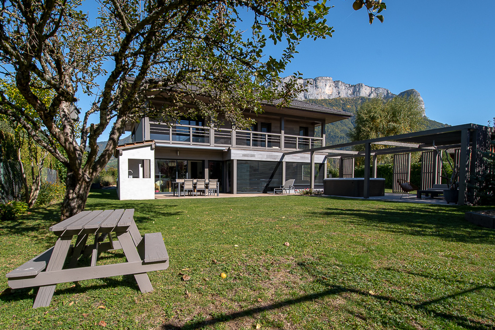 Exclusivité. Sur les hauteurs d’Annecy, les montagnes en toile de fond, cette maison d’architecte offre un style de vie proche de la nature, entre lac et stations de ski, à seulement 15 minutes d’Annecy. Propriété moderne aux lignes contemporaines, elle s’étend sur une surface de 215 m2 utiles aux prestations de très belle qualité, et à l’intérieur lumineux, très fonctionnel et ouvert sur l’extérieur. Elle se compose d’une vaste pièce de vie avec cuisine équipée ouverte et cellier, salle à manger et salon avec poêle à bois. 4 chambres dont une grande suite parentale à l’étage avec dressing, salle-de-douche et accès balcon. A l’extérieur, terrasse en bois avec cuisine d’été, espace pergola avec spa et jardin plat de 950 m2 piscinable. Garage pour 2 véhicules et places de parking extérieur. Nombreux rangements. DPE : C Les informations sur les risques auxquels ce bien est exposé sont disponibles sur le site georisques.gouv.fr Honoraires TTC à la charge du vendeur.