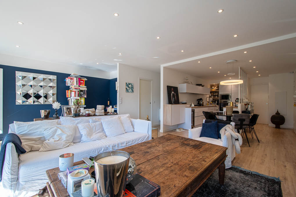 2-bedroom flat of approx. 85 sqm located on the 8th floor of a 12-storey building with magnificent views of the lake and mountains. It comprises a large living room with an open-plan equipped kitchen and a living room extended by a covered balcony with lake view. 3 bedrooms including a master suite with shower room and built-in wardrobes. Cellar.