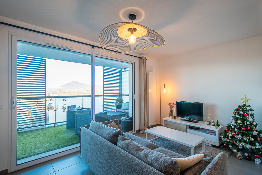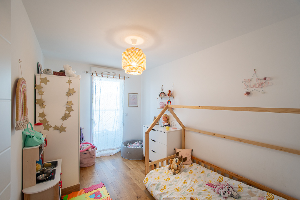 3-room flat of 66 sqm nestled on the 3rd floor of a 6-storey modern building dating from 2020. Functional and bright, the interior comprises an entrance hall with wardrobe, a living room with an equipped kitchen open onto a lovely sheltered terrace with clear views over the surrounding countryside. Sleeping area with 2 bedrooms, dressing room, bathroom and separate toilet.