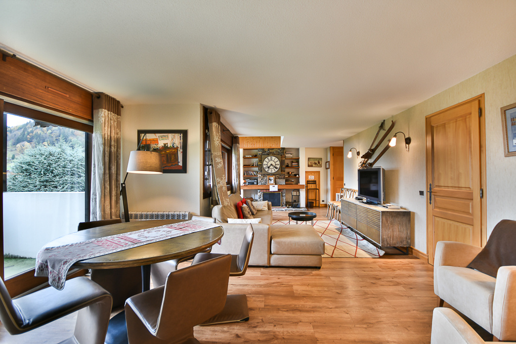 Spacious 4-bedroom duplex flat of 175 sqm located on the top floor of a small building with beautiful mountain views. The interior is warm, bright and modern. It comprises a large living room with an open-plan equipped kitchen, a lounge with fireplace and south-west-facing balconies. Master suite with bathroom and views of the ski slopes. 3 large bedrooms with en-suite shower rooms. A ski room, a laundry room and 2 garages complete this high quality property.