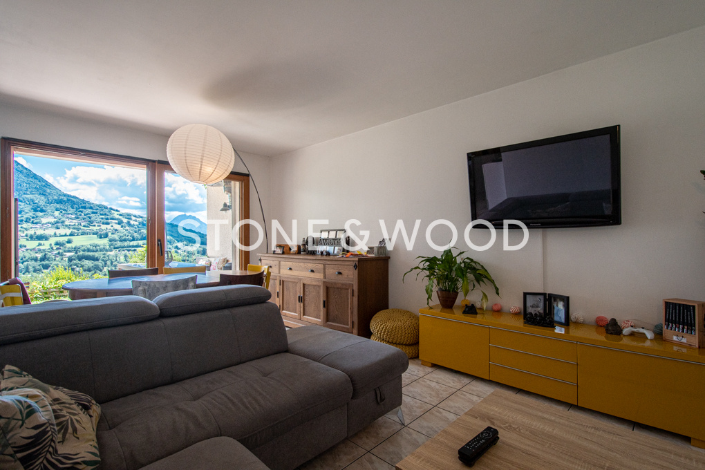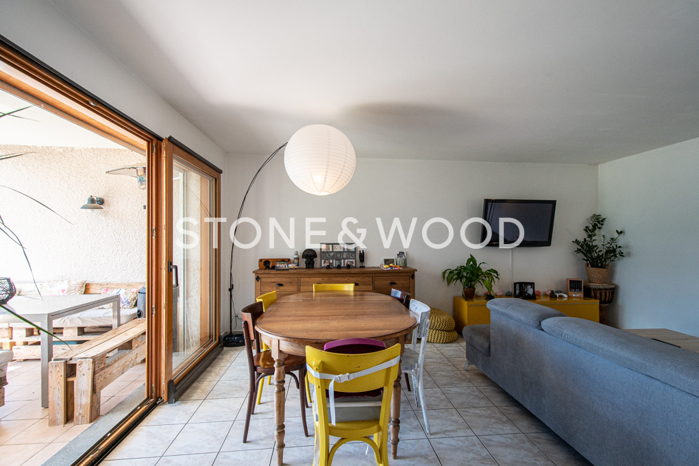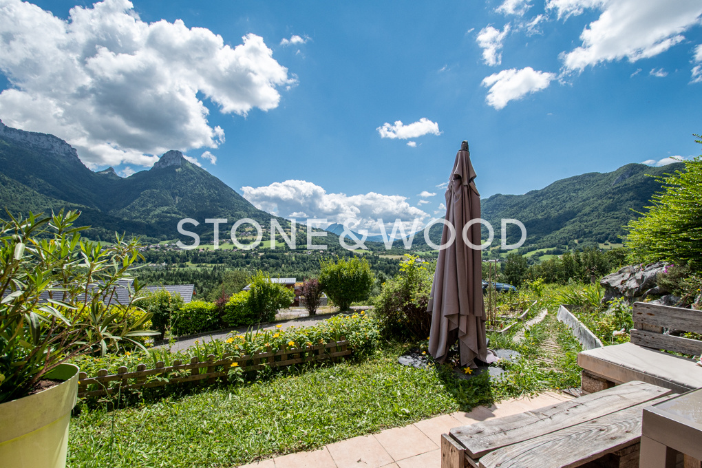 In a quiet and green setting 15 min from Annecy center and 10 min from the motorway interchange for Geneva.Apartment of 66.18 sqm with a private garden located on the ground floor of a dwelling-house. The property comprises a bright living room with semi open kitchen, dining room and lounge. Large terrace with breathtaking views of the mountains. 2 bedrooms, one with en-suite shower room. 2 parking spaces (one of is covered). ECP rating: F Condominium property (3 lots). Estimated charges: EUR200 / year Agency fees chargeable to the seller