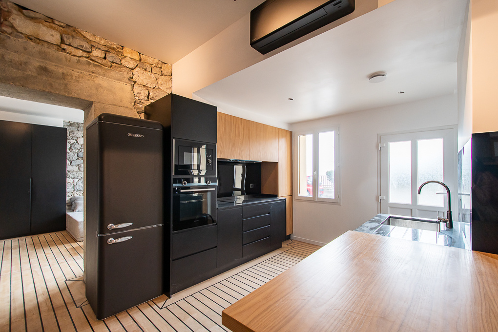 En pierre et bois, ce loft de 70 m2 offre luminosité et beaux volumes. Il se compose d’une vaste pièce de vie avec cuisine équipée ouverte, salon/séjour et espace pouvant être transformé en chambre. Douche et WC indépendant.