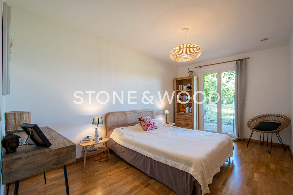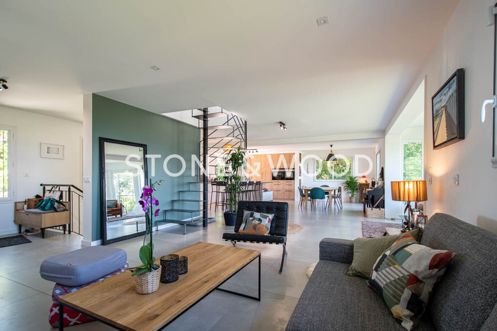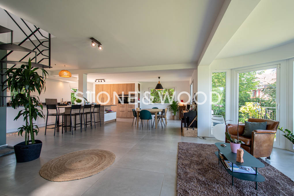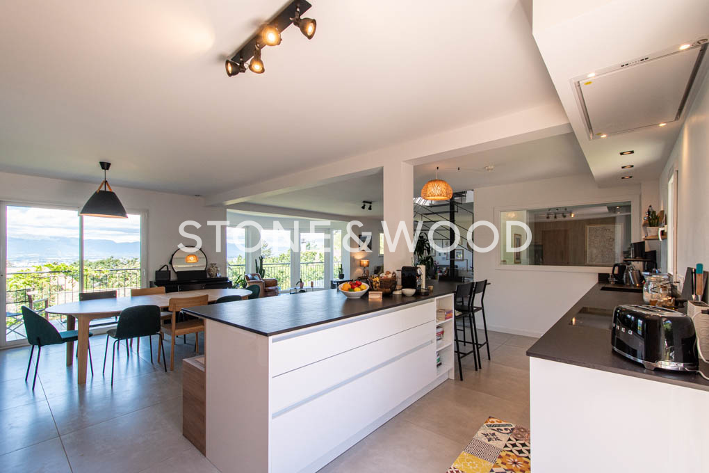 In Collonges-sous-Salève, 5 minutes from the Swiss border, 20 minutes from Geneva and 25 from its airport.Magnificent architect-designed villa nestled in a calm and green setting close to all amenities. Fully renovated in 2021, the house is bright and offers beautiful views over Geneva and the lake.With a habitable area of 196 sqm (236 sqm of usable space) spread over 3 levels, this family property comprises on the ground floor, a spacious living room with an open plan fitted kitchen, a dining room with balcony access and a TV lounge with fireplace. Upstairs, bedroom with ensuite dressing room and shower room. On the lower ground floor, 4 bedrooms including a master suite with dressing room, bathroom and toilet. 2 shower rooms with toilet.Plenty of storage. Laundry room. Cellar. Large garage with mezzanine.Outdoor, 1 334 sqm enclosed plot with heated swimming pool, wooden terrace and a greenhouse. DPE: CAgency fees chargeable to the seller.