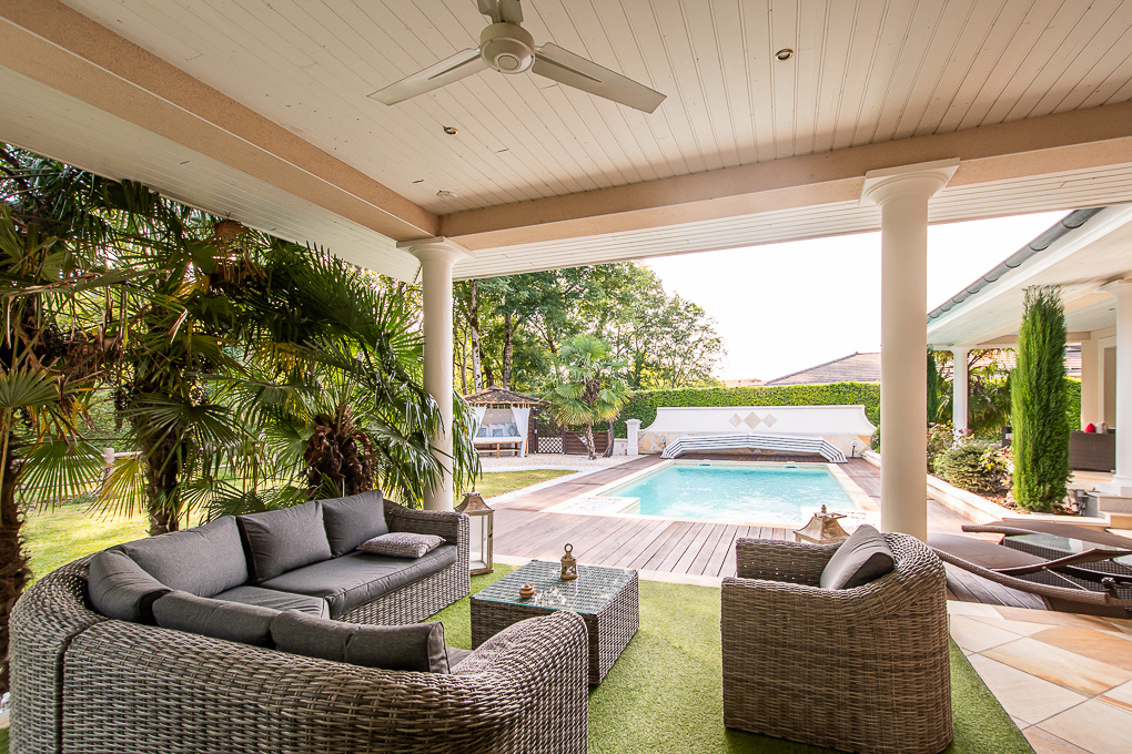 Magnificent architect-designed villa of approx. 274 sqm over 2 levels with high quality features (geothermal heating, home automation, etc.). 2,586 sqm enclosed plot with landscaped garden, heated swimming pool and private woodland crossed by the Menoge river.