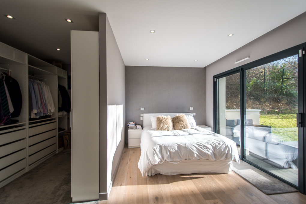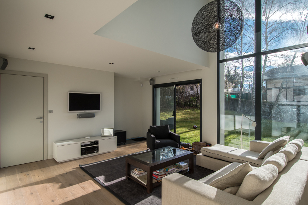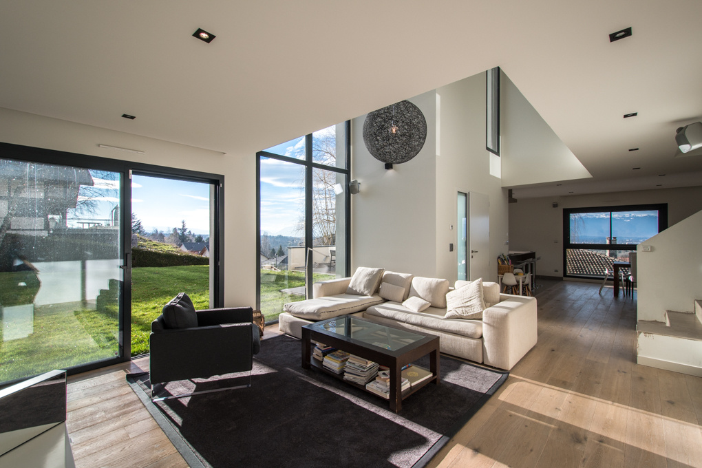 Sublime contemporary house of about 240 sqm with possibility of enlargement, established on a plot of 1’027 sqm. Villa of architect, bright with nice volumes having a large living room with several access terrace. Fully equipped kitchen open to dining-room. 3 bedrooms and possibility of 4 including a master suite. Studio to renovate. Full basement. Large garage and parking. Stunning view on Geneva and the Lake. DPE : B