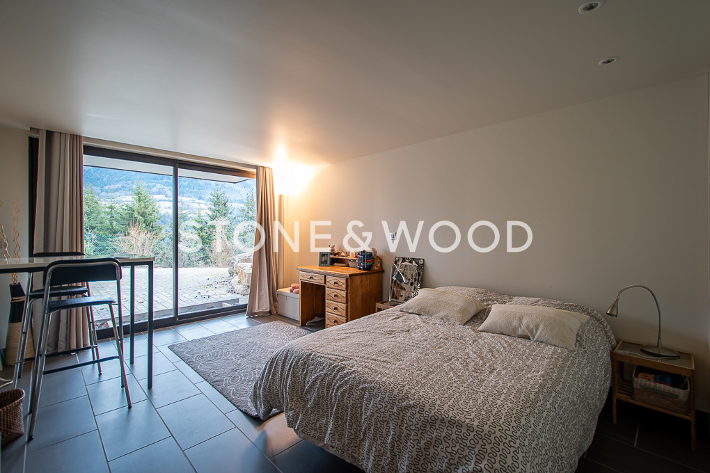 The property extends to over 373 sqm spread on 3 levels with a lift. It comprises a cathedral living room filled with natural light and extending onto a large terrace enjoying clear views of the mountains. Open-plan equipped kitchen with central island and pantry. 6 bedrooms, including a master suite with bathroom and dressing room. Mezzanine. On the lower ground floor, laundry room, wine cellar, storage space and large garage. Wellness area including an indoor swimming pool with spa, hammam, shower and toilet. DPE : B