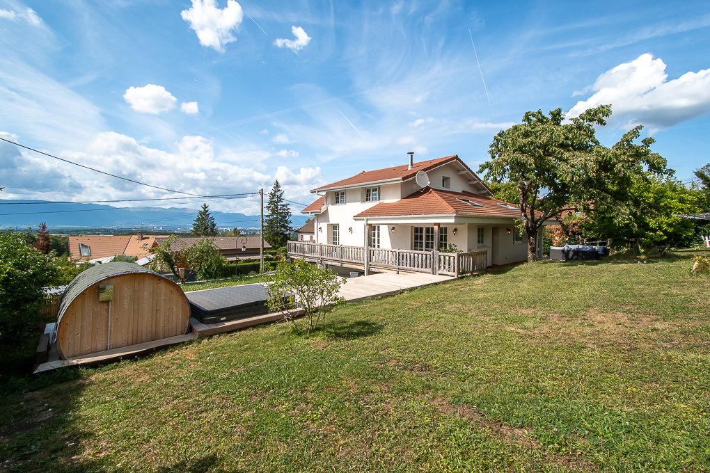 In a green and residential area on the heights of the Salève mountain facing Geneva, close to the Swiss border and all amenities