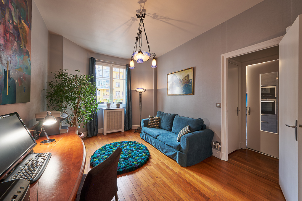 In a beautiful Art Deco buidling conveniently located in the centre of Annecy, charming 2-bedroom flat of 91 sqm with high ceilings, mouldings and solid oak flooring.