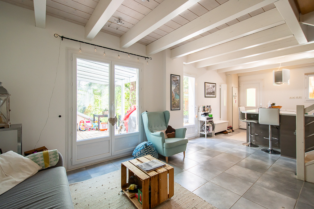 Fully renovated 1940s terraced house of 116 sqm spread over 3 levels. The interior comprises a bright living room with open-plan fitted kitchen and access to the large terrace with pergola. On the first floor, TV lounge and master suite with dressing room, shower room and toilet. In the attic, 2 bedrooms and bathroom. Carport and garden shed. DPE: D