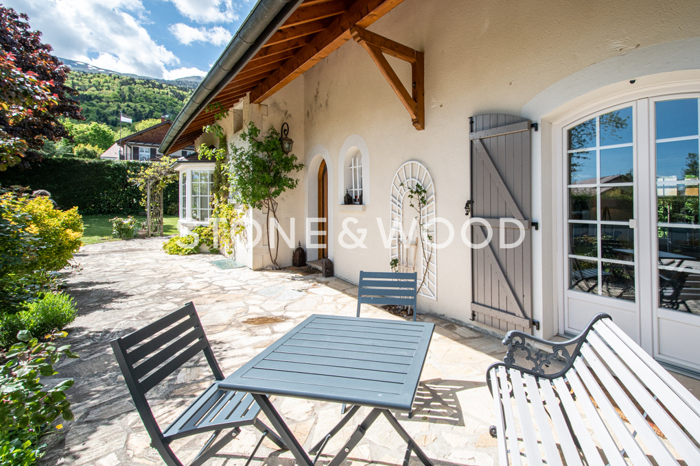 Charming property of 332 sqm with 1084 sqm enclosed plot. The house is a harmonious blend of ancient and modern with high end finishes and beautiful volumes.It comprises an independent kitchen with terrace access, a large living room with fireplace with an access to the garden. Home office. Library. 5 bedrooms including a large master suite with dressing room and bathroom. Large basement with a cellar and a playroom with an equipped kitchen. Large double garage.Quiet and residential environment. Golf of Maison-Blanche at 2 km, Geneva airport at 15 minutes and shopping center at 5 kms. DPE: DAgency fees chargeable to the seller