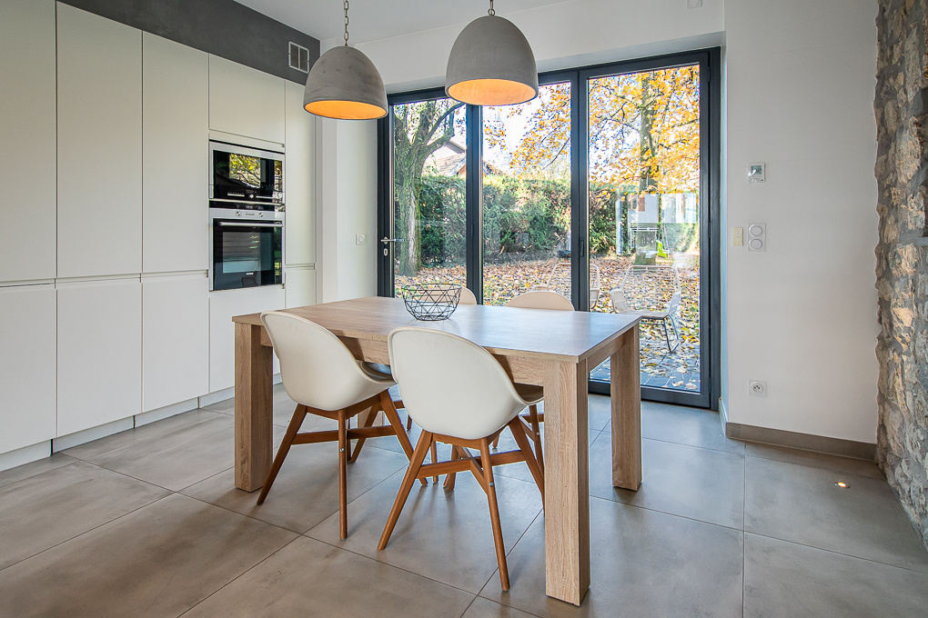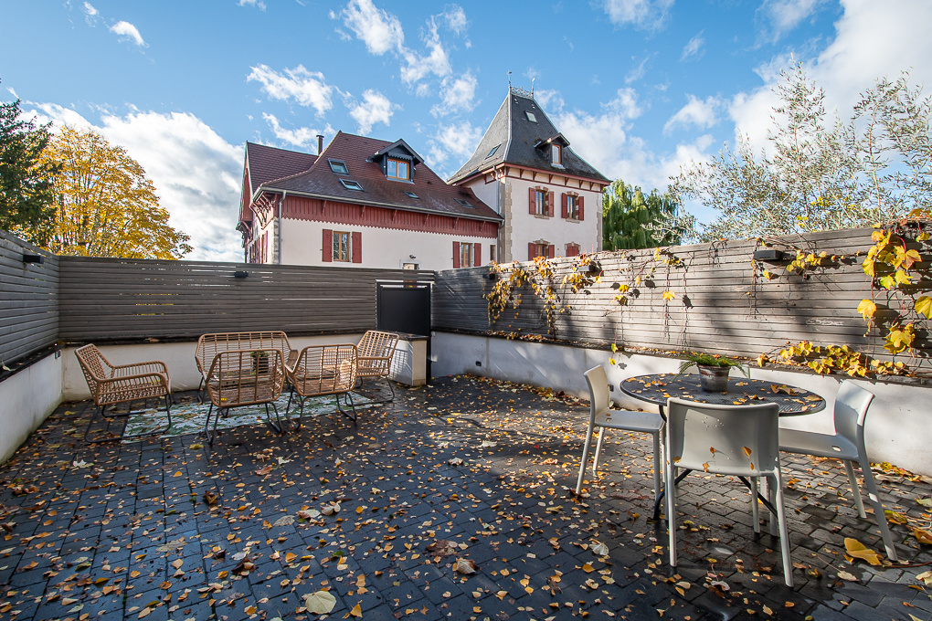 On the heights of Annecy-le-vieux, in a private and peaceful setting, semi-detached house of approx. 144 sqm with 2 terraces, nestled in a former Savoyard mansion.