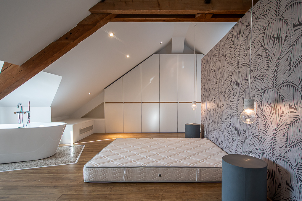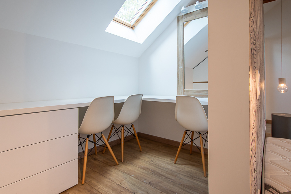 It comprises a large open-plan living room with an equipped kitchen, a lounge with a wood burner and terrace accesses. Cloakroom/storeroom. Upstairs, 3 bedrooms, bathroom and utility/storage room. Beautiful attic master suite with dressing room, bath and Italian shower. 2 parking spaces and garage.