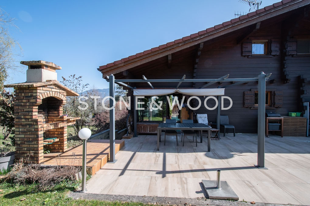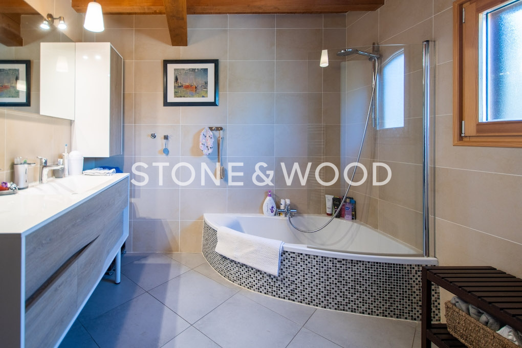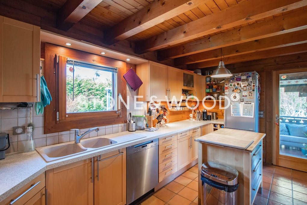 In a preserved setting located 25 minutes from Geneva and 10 minutes from the first ski resorts.Charming chalet fully renovated in 2014 with 238 sqm of living space spread over 3 floors. 1184 enclosed plot planted with trees. The interior offers great services, warmth and natural light thanks to the many openings.It comprises a beautiful living room of about 41 sqm with fireplace. Separate fitted kichen with access to a veranda leading to the garden and the South/West facing terrace. Bathroom. Laundry. Upstairs, 4 spacious bedrooms and a shower room with toilet. On the ground floor, guest bedroom with shower room. Possibility of a separate apartment. Garage, cellar, carport and many parking spaces. DPE:E Agency fees chargeable to the seller