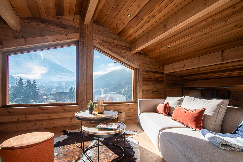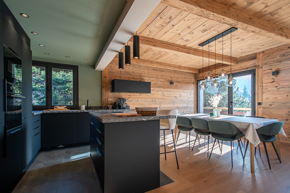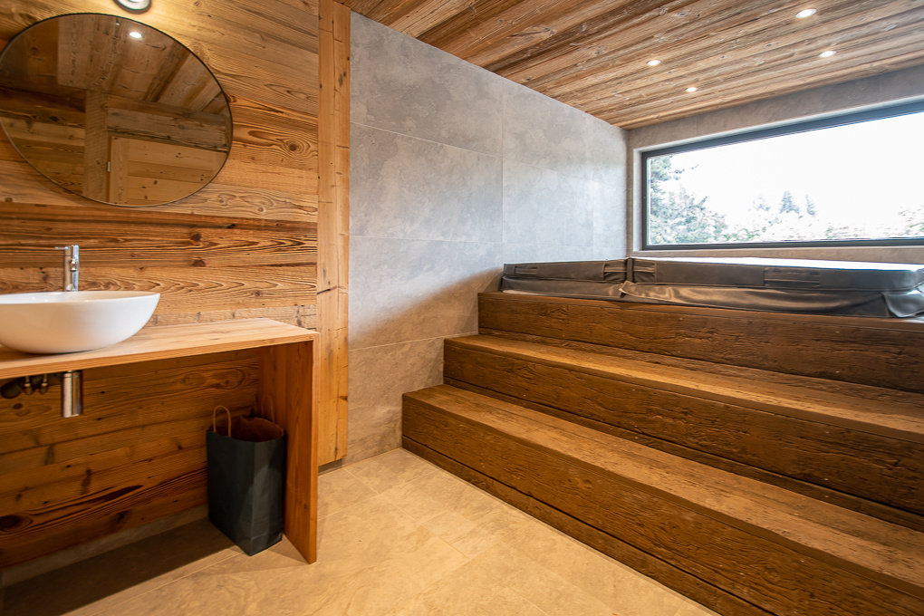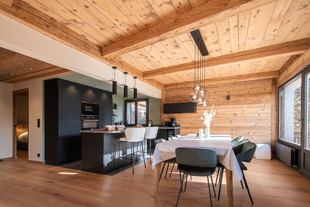 It comprises a large living room with an open-plan fitted kitchen, a dining room.and a lounge with wood stove and balcony access. 4 bedrooms including 2 with ensuite shower room. Large bathroom. Spacious attic mezzanine with panoramic views of the ski slopes and mountains. Ground floor with wellness area, laundry room and ski room. Double garage and outdoor parking space.
