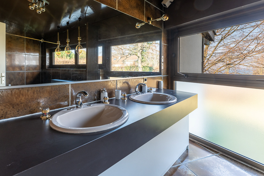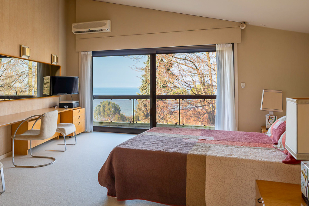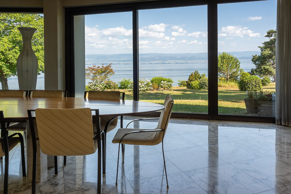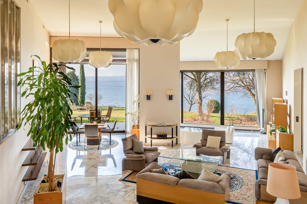 On the shores of Lake Geneva, exceptional waterfront property of 728 sqm nesled in a private parkland of approx. 1 hectare with a second house, a swimming pool and a private pontoon.