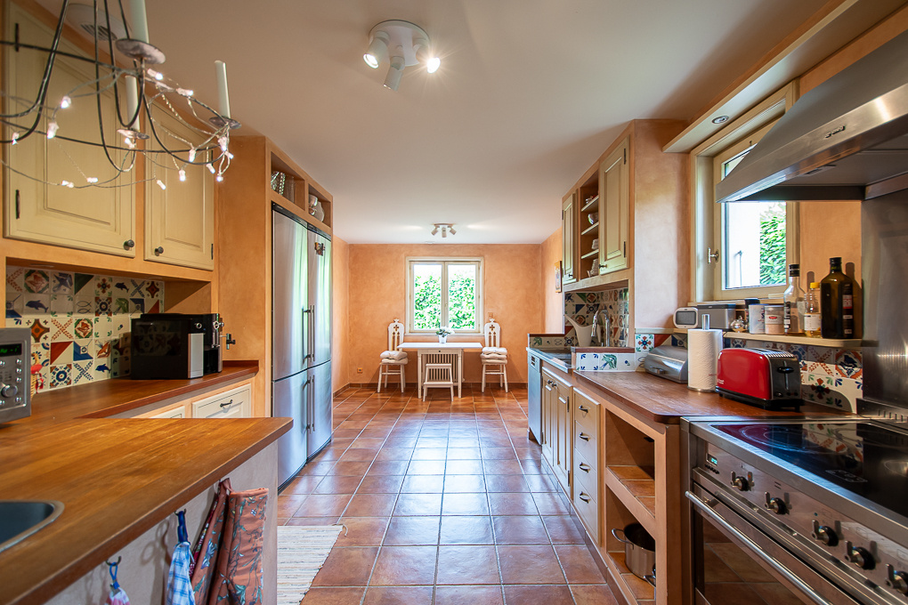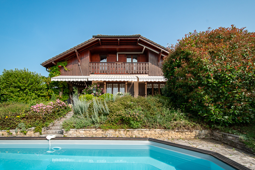 Combining the cosiness of a chalet with the comfort of a modern property, it comprises a spacious living room with fireplace and access to the terrace, a dining room and a separate fitted kitchen. 4 bedrooms, 2 of which are en-suite with shower/bathroom. Bathroom with WC. Laundry room and detached double garage.