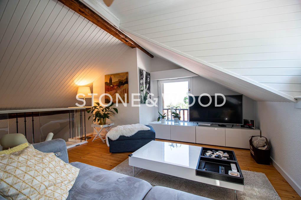 In a magnificent farm house, charming duplex of around 147 usfull sqm. Spacious fitted kitchen open to cathedral lounge with fireplace and balcony. 3 en-suite bedrooms, one with dressing room, bathroom and wc. Mezzanine / 2nd living room. Co-ownership garden. Cellar. 2 covered parking spaces + condominium parking. Location in the center of Archamps, close to transport, shops and schools. DPE: D. The property is subject to the status of the condominium (10 lots). The share of the forecast seller charge budget (current expenses) is around EUR 3,300 / year.