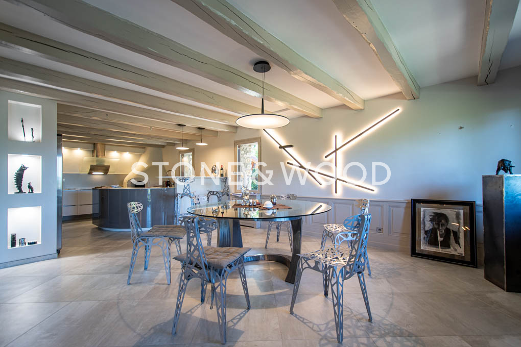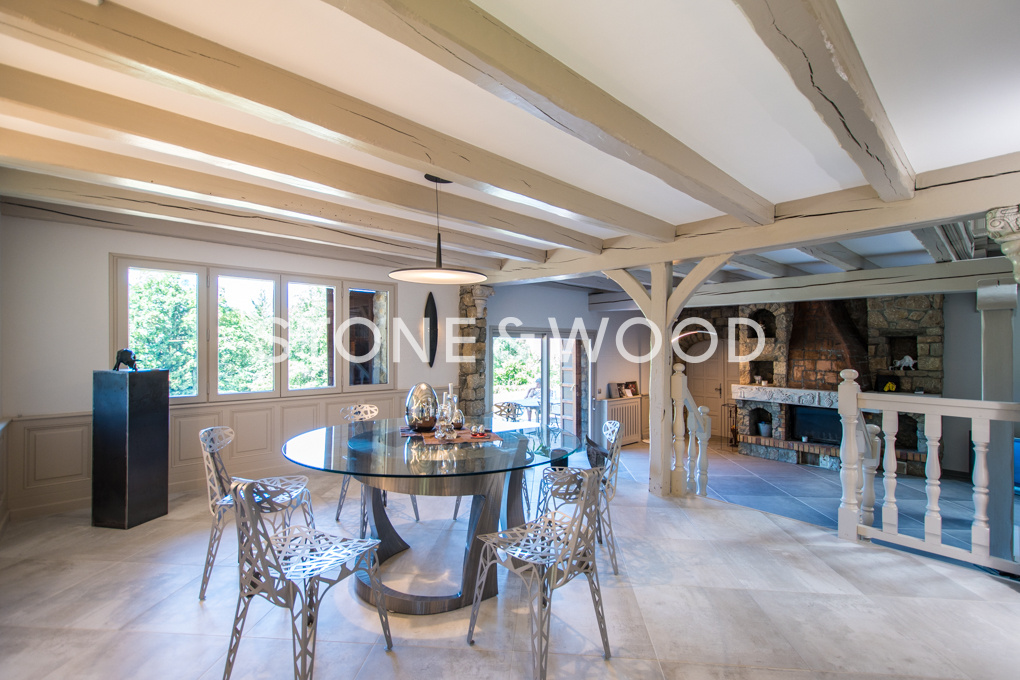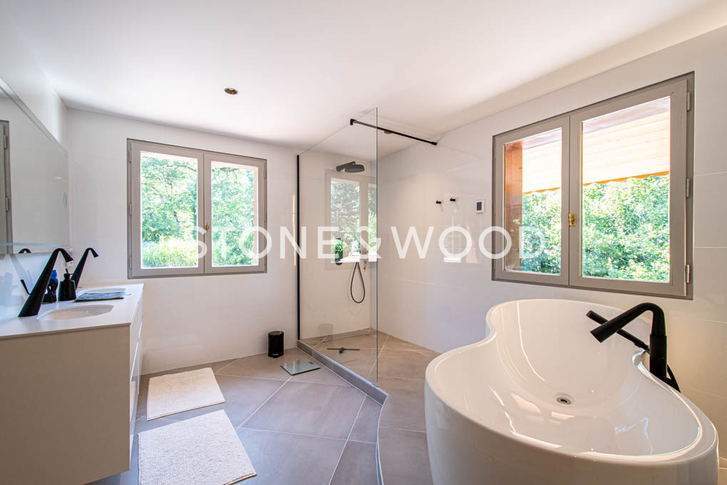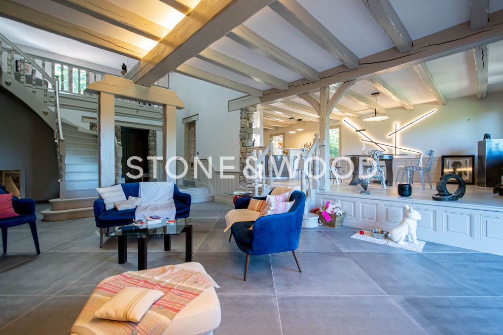 History and character for this property renovated with high-end services and located in a bucolic setting. Sumptuous residence of approximately 515 sqm spread over 4 levels and established in a park closed and raised of 4’944 sqm. Cathedral living room with fireplace, kitchen with bread oven and pantry, open dining-room / living room. Wellness area with pool, spa, sauna and steam room. Upstairs, 4 bedrooms including a master suite and three with their en-suite bathroom. TV lounge and office. 5th bedroom en-suite in attic. Basement including a discotheque, cinema room and boiler room, wine cellar, garage for 2-3 cars. Presence of old restored Savoyard style buildings (wash house, winepress, charreterie, etc). Garden sanitation. Solar panels. Green environment, calm and no vis-à-vis. DPE: D. Agency fees chargeable to the seller.