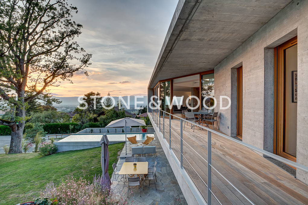 Dans un cadre préservé, calme et verdoyant sur les hauteurs de Collonges-sous-Salève Cette propriété d’architecte contemporaine aux prestations haut de gamme offre une surface de 245 m2 hab. et 280 m2 utiles. Les volumes sont magnifiques et optimisés afin d’offrir luminosité naturelle et vues dégagées sur Genève et le Jura à travers les grandes baies vitrées prolongées par des terrasses surplombant le jardin et la piscine chauffée à débordement. Parcelle clôturée et arborée de 1307 m2 Bain norvégien. Cave à vins enterrée et ventilée. Garage pour 3 voitures et places de parking extérieur. Honoraires TTC à la charge du vendeur
