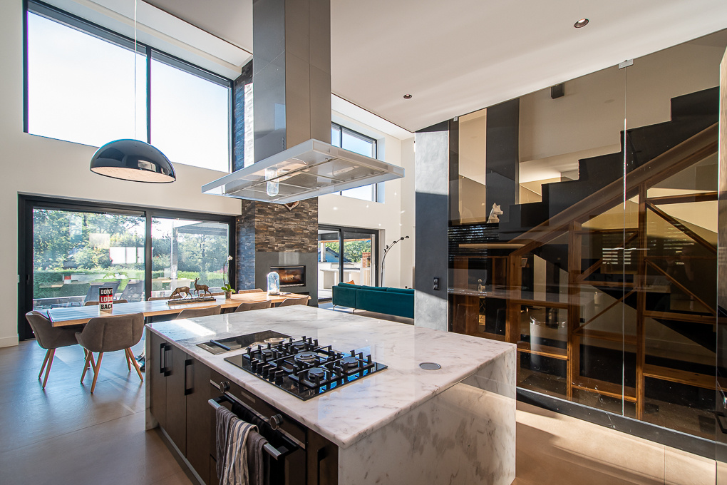It comprises a spacious double height living room with an open-plan equipped kitchen, a dining room and a lounge with fireplace and terrace access. 3 bedrooms, including a large master suite with bathroom and sitting room. Large dressing room. Utility room and wine cellar. Double garage. DPE: C