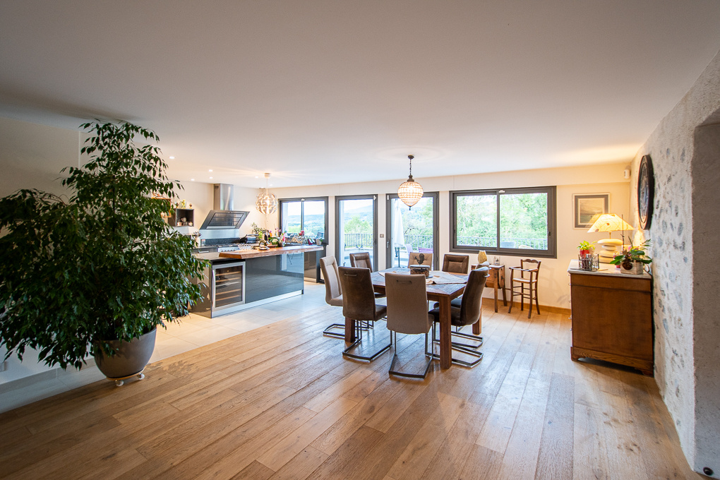 In a quiet and rural setting between Annecy and Geneva, 19th century farmhouse fully renovated with great care. Set on 1633 sqm enclosed plot, the property has a total area of 370 sqm spread over 3 levels.