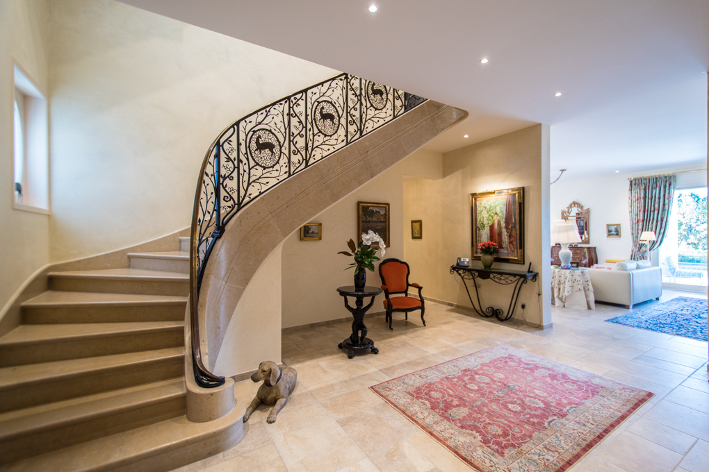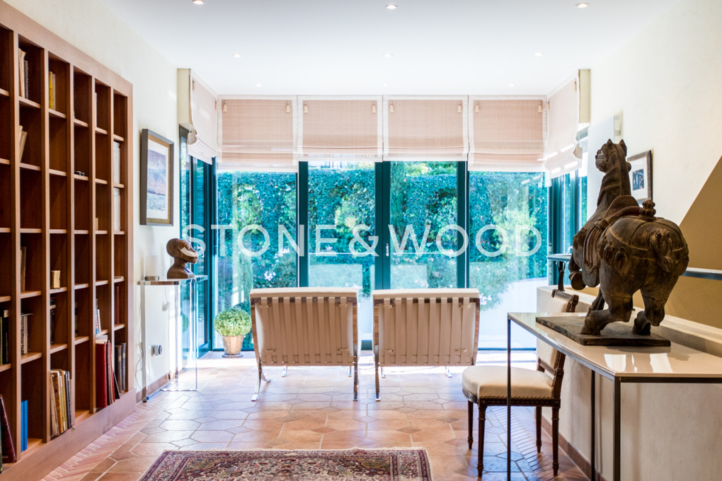Cathedral entrance hall with elevator, spacious living room with several accesses to a large terrace, independent equipped kitchen and dining room. Office / Library. Upstairs, 4 bedrooms, one en-suite and a large master suite with bathroom, toilet and dressing room.